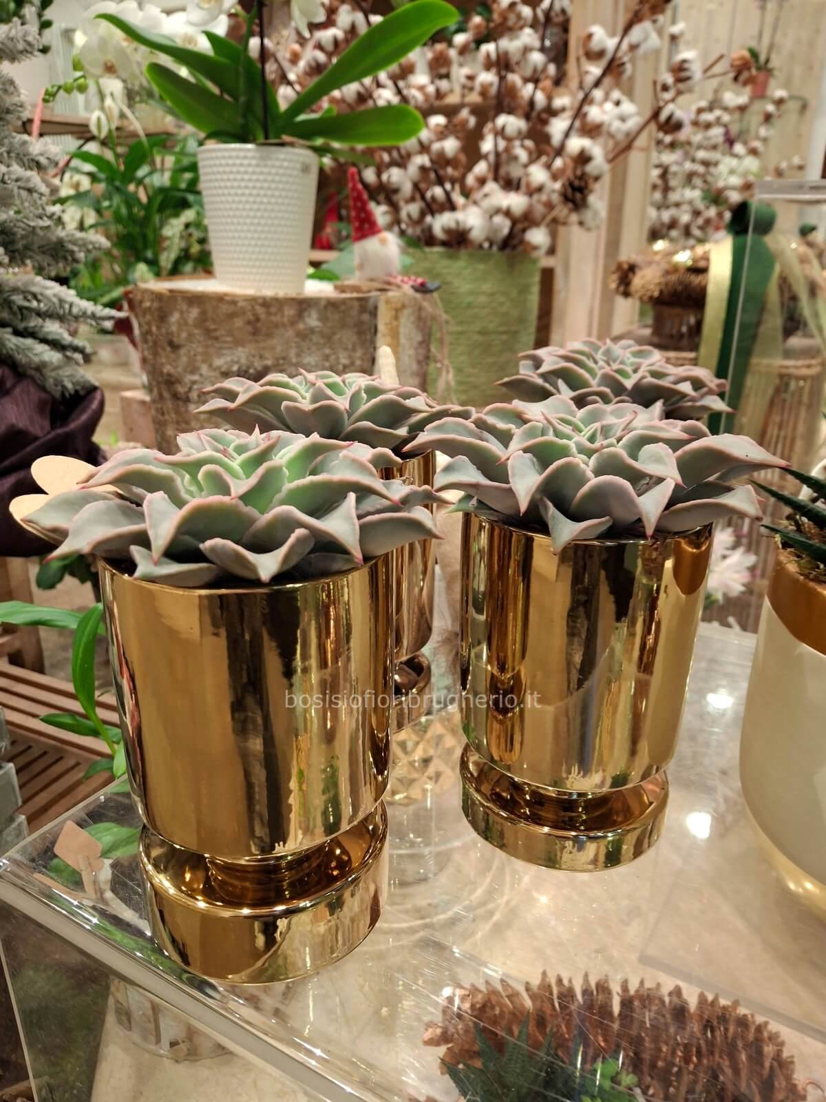 Pianta grassa in elegante vaso ceramica oro